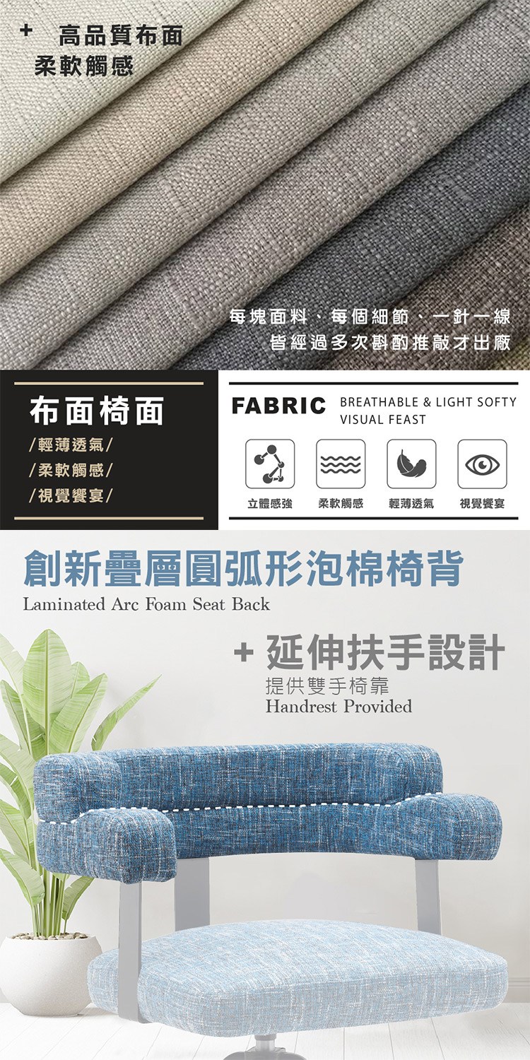 * 採創新疊層圓弧形泡棉椅背設計