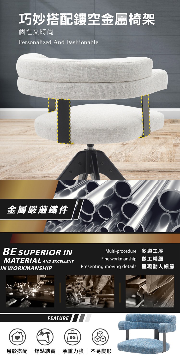 * 巧妙搭配鏤空金屬椅架個性時尚