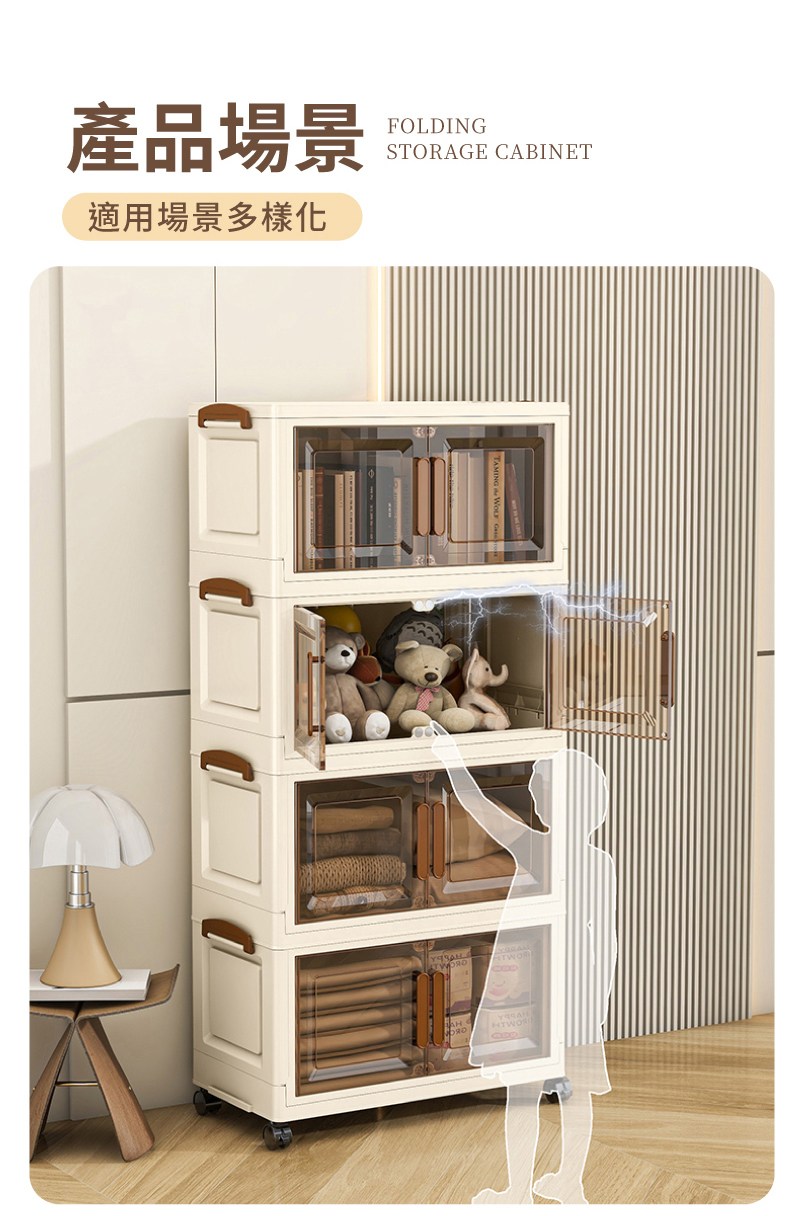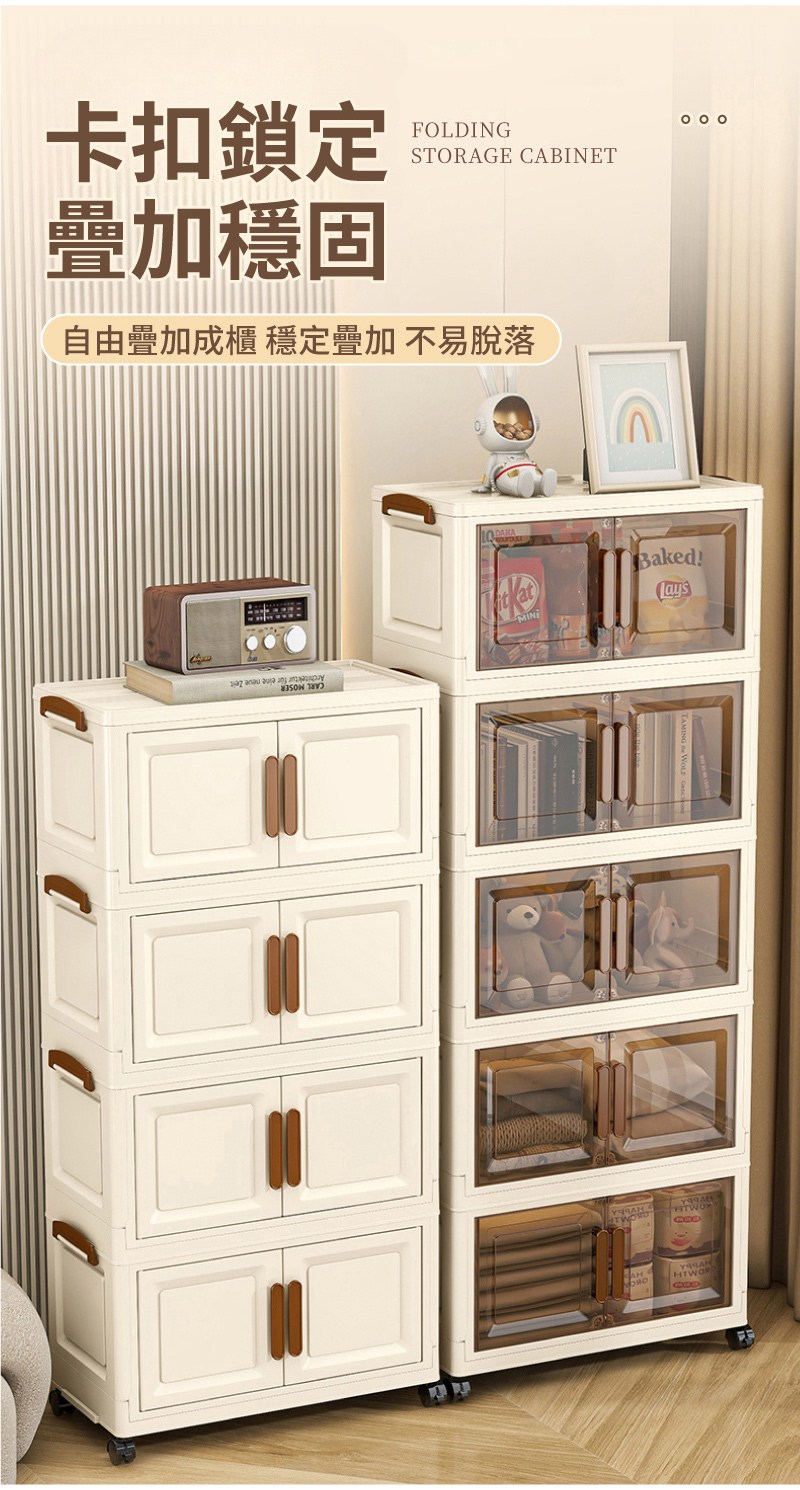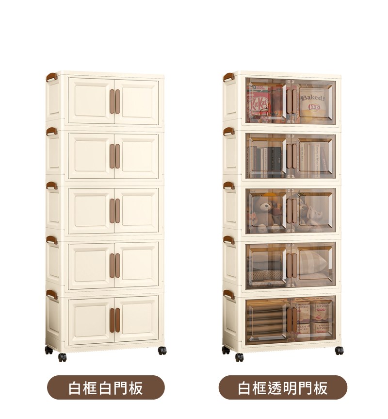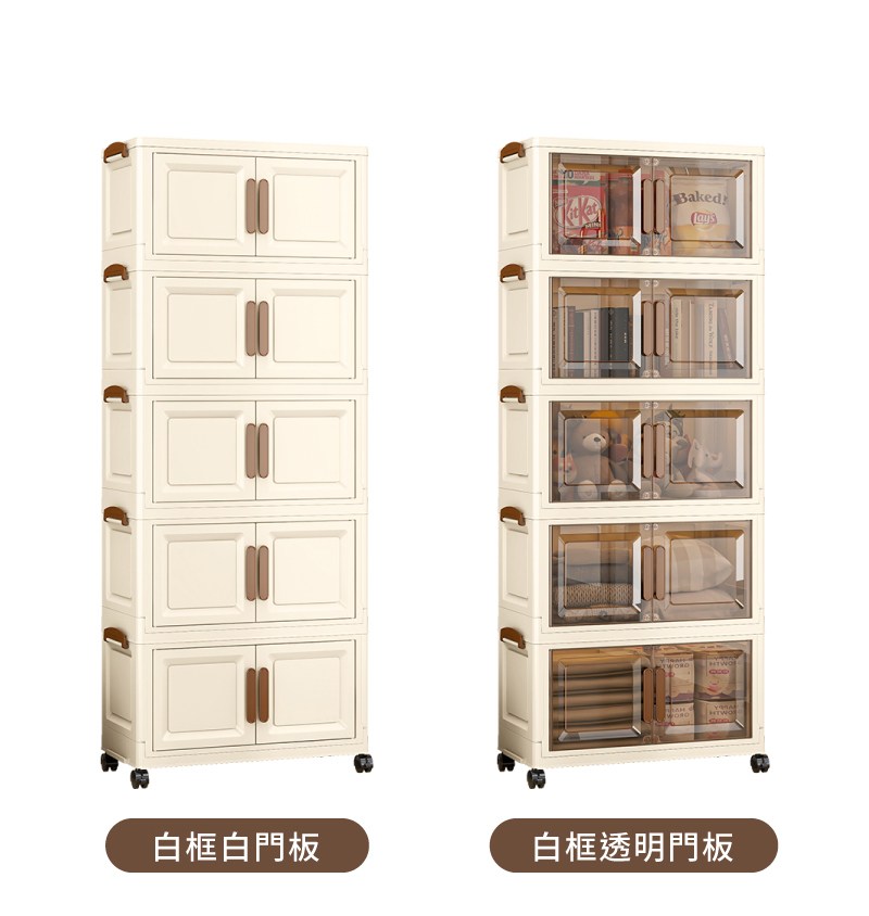 點我下載【 好氣氛家居】奶油風45CM五層多功能折疊帶輪收納櫃/置物櫃(抽屜櫃 收納箱)150L透明門板