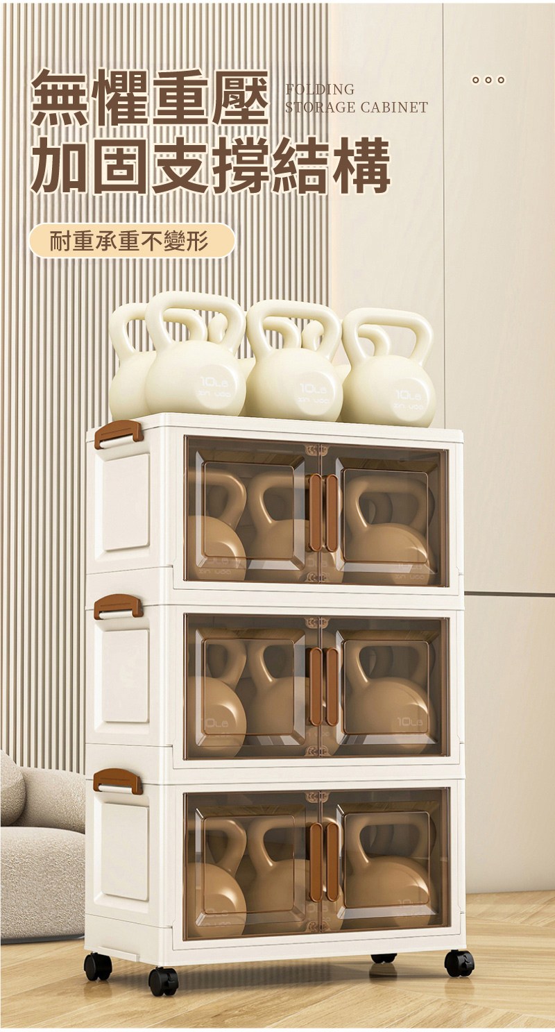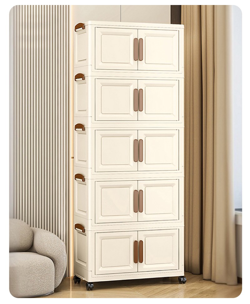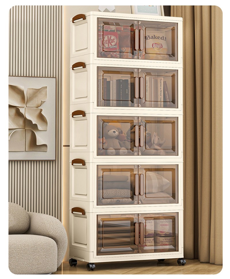 點我下載【 好氣氛家居】奶油風45CM五層多功能折疊帶輪收納櫃/置物櫃(抽屜櫃 收納箱)150L透明門板