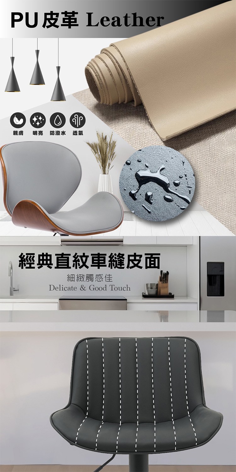 台灣與歐美同步販售、美規設計,防潑水透氣PU皮椅面、易於清潔,經典直紋車縫皮面,細緻觸感佳,
