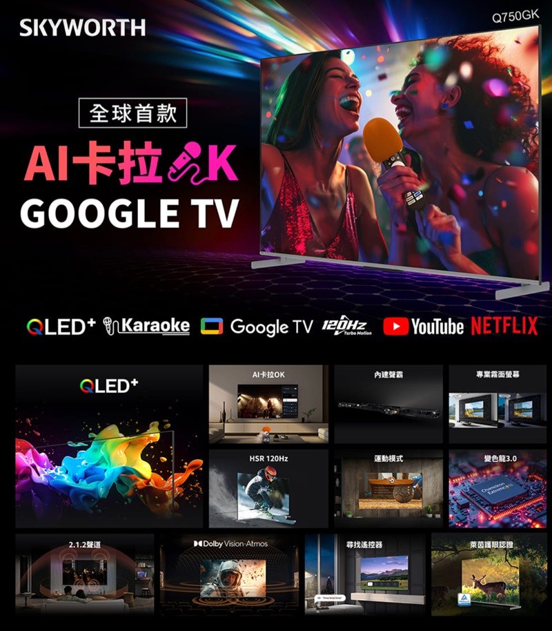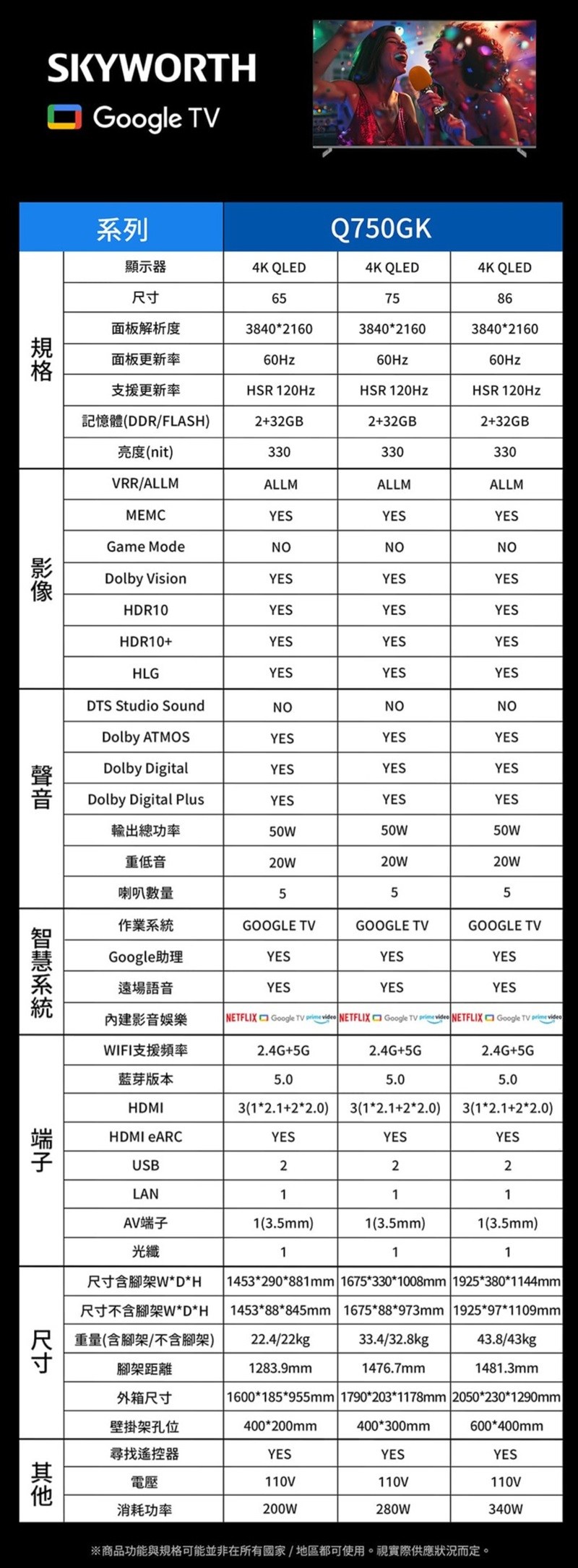 桌上基本安裝 限量贈麥克風x2 / SKYWORTH 創維86吋 AI歡唱K歌組 (86Q750GK+Klipsch R-40PM) Google TV 聯網顯示器
