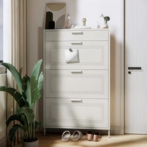 點我下載【AOTTO】大容量鐵製三層拉門下掀鞋櫃(鞋櫃 鞋架)白色