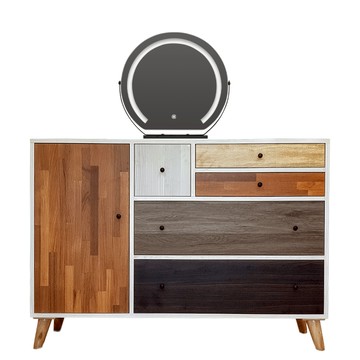 hoi! 林氏木業椰子糖系列抽屜櫃附鏡可伸縮化妝桌 TE2E-原木色