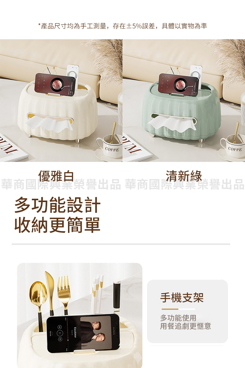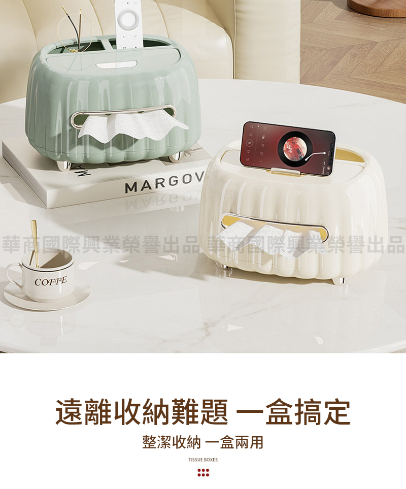 【媽媽咪呀】法式面紙盒 桌上型置物盒 手機支架收納盒(抽取式衛生紙盒 紙巾盒 遙控器收納 浴室收納)清新綠