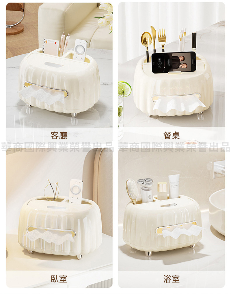 【媽媽咪呀】2入法式面紙盒 桌上型置物盒 手機支架收納盒(抽取式衛生紙盒 紙巾盒 遙控器收納 浴室收納)優雅米2入