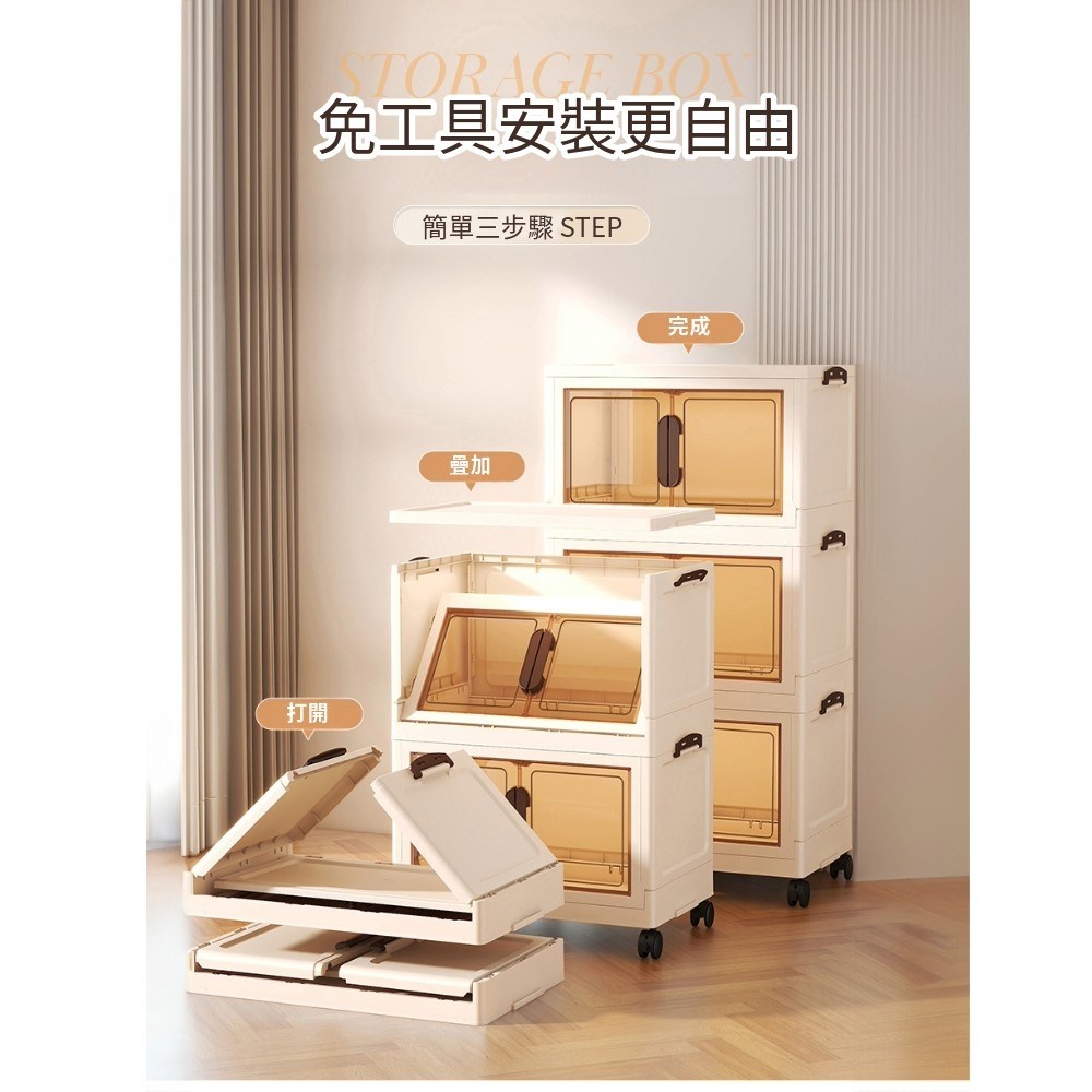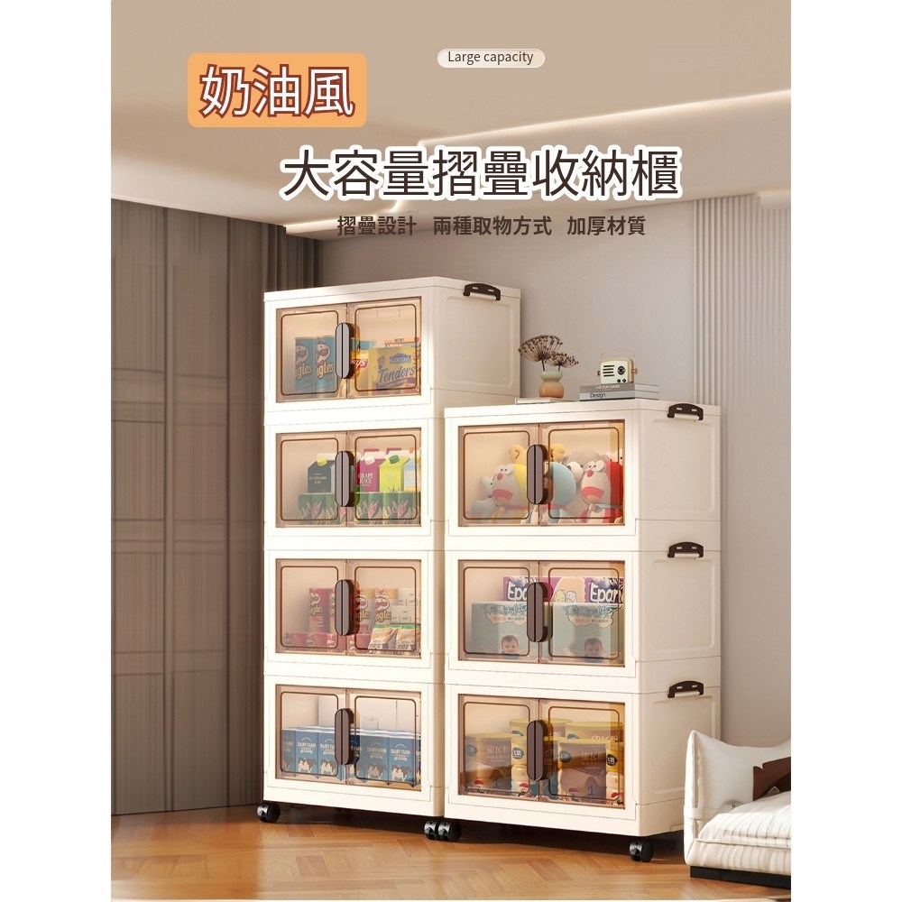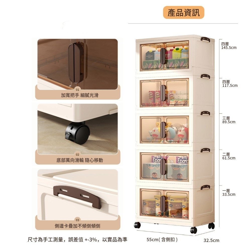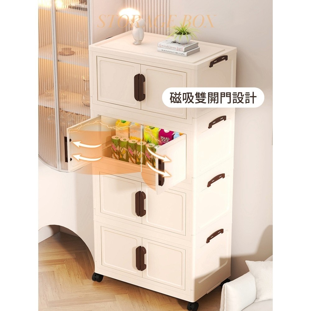 點我下載【AOTTO】55面寬奶油風雙開磁吸五層折疊收納櫃(兩色可選)奶油
