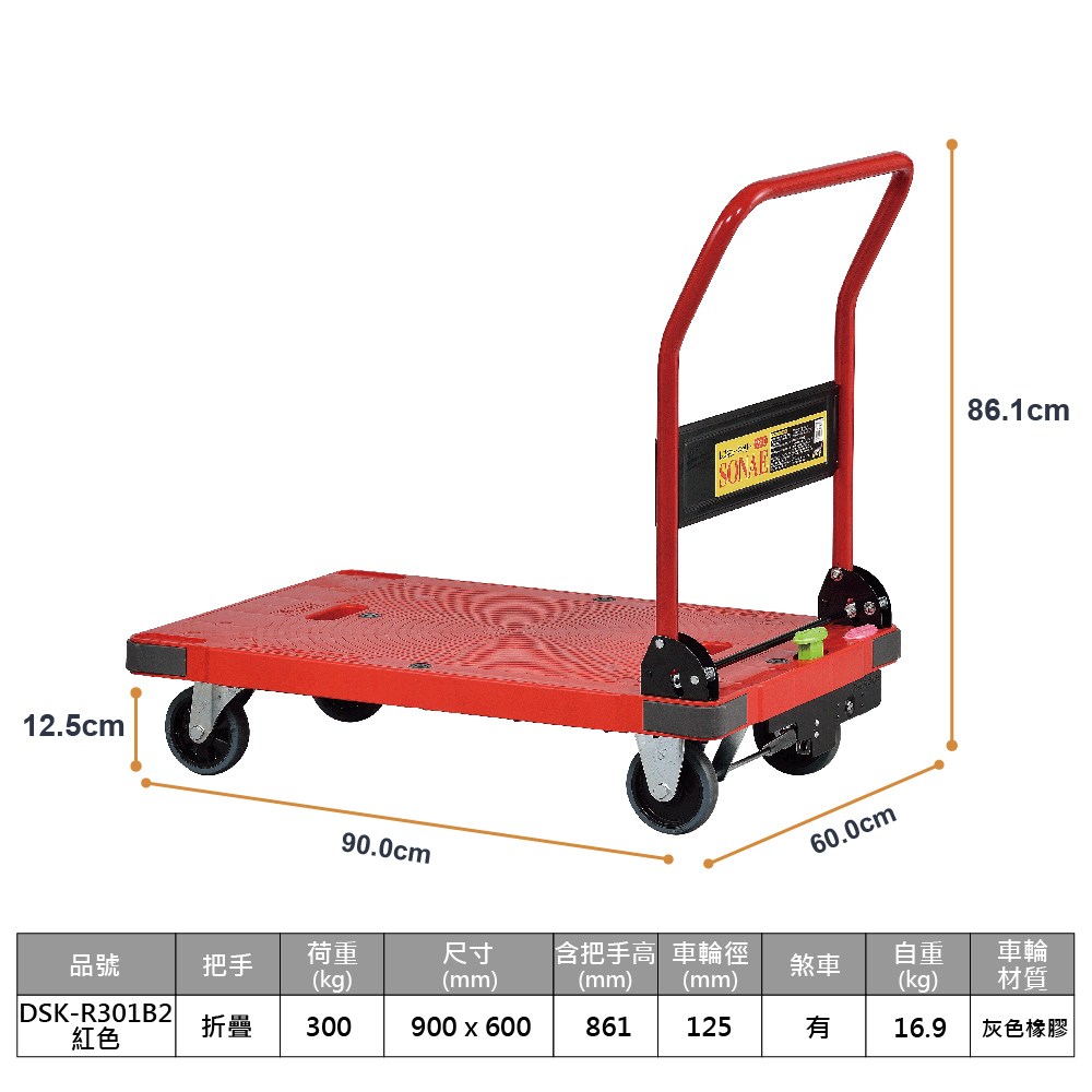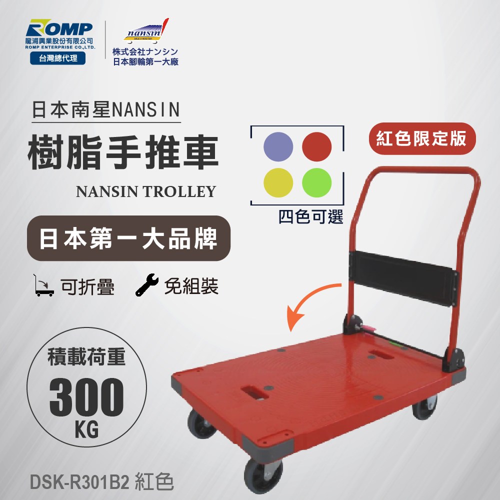 【日本南星NANSIN】樹脂手推車(DSK-R301B2)紅色