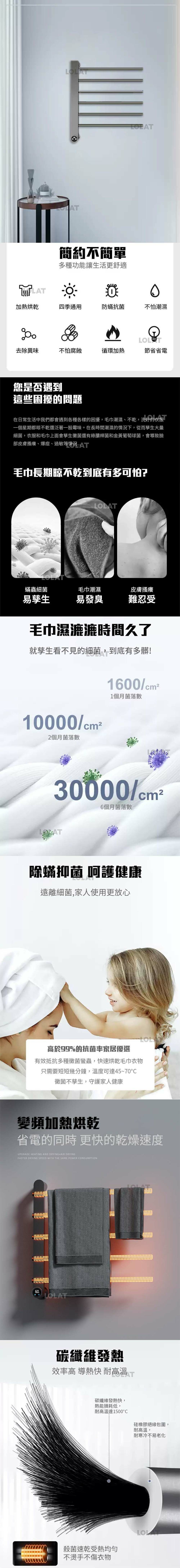 Underscore 電熱毛巾架 小-霧面黑-帶掛勾 (埋線款, 220V)