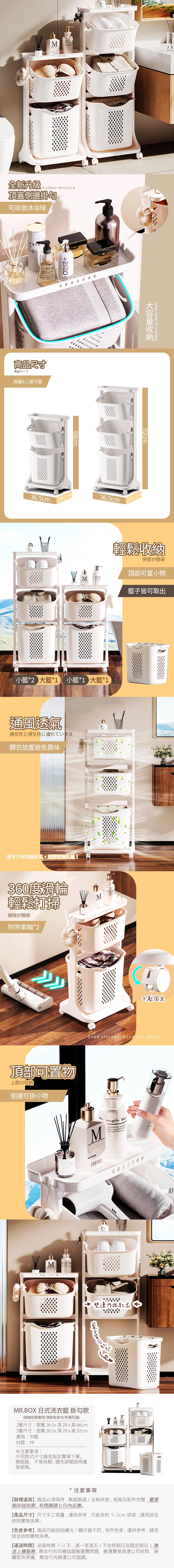 【Mr.box】掛勾款2層分類髒衣籃洗衣收納籃-附輪