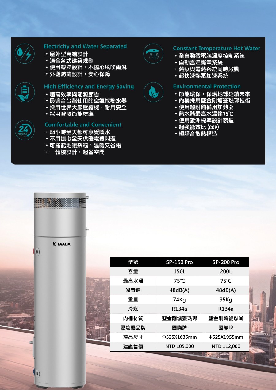 • 混和雙熱力系統:電熱輔助與熱泵雙熱力,快速加熱又省電