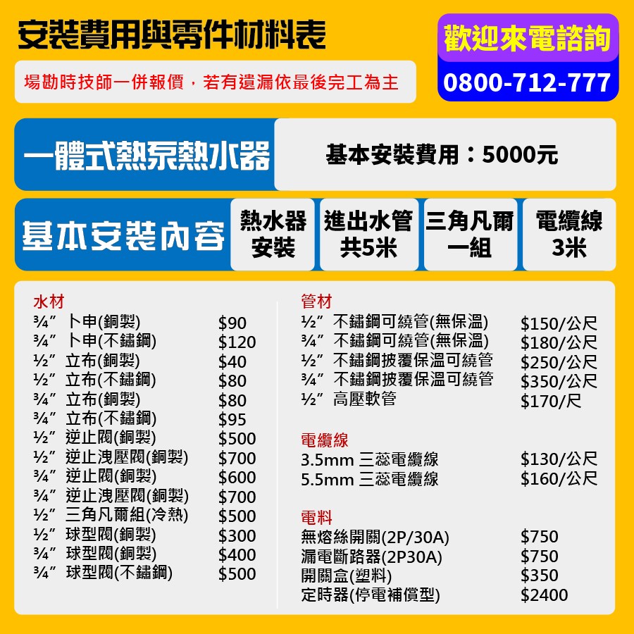 *標準安裝包含3米電線、5米冷熱水管、2米冷凝水排水管