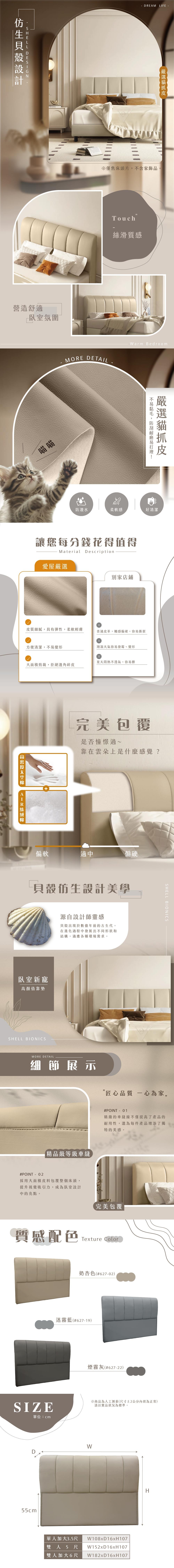IHouse-貝殼波堤 雙人5尺耐磨升級貓抓皮床頭片奶杏仁#627-02