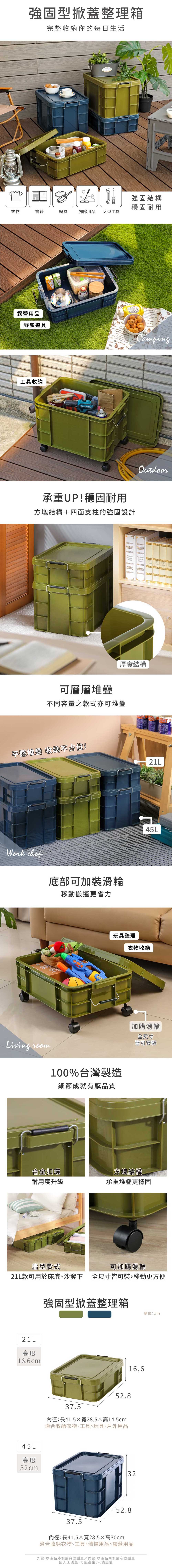 二代多功能環保耐重收納箱 50L 軍綠色