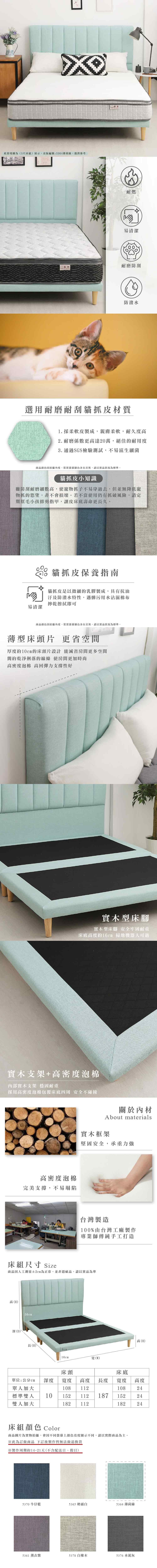IHouse-厚Q豆腐 雙大6尺(貓抓皮床頭片+高腳床架)-房間兩件組/床組迷濛藍#627-19