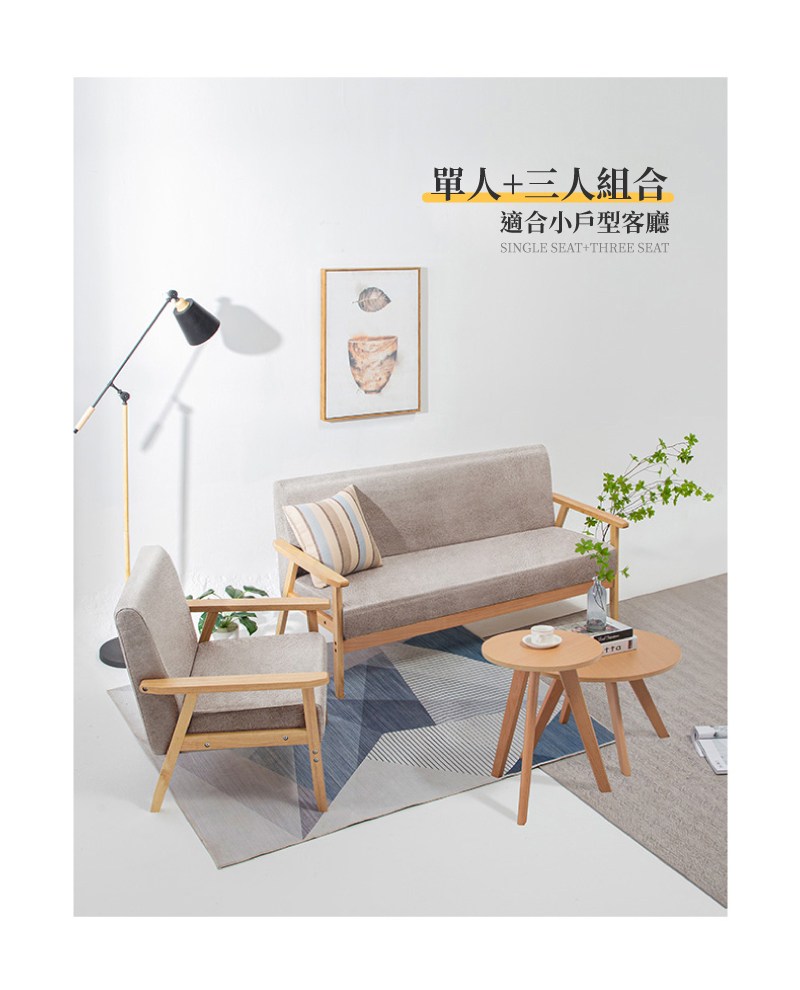 【好氣氛家居】北歐日式小戶型科技布單人木質沙發/休閒椅 沙發椅 布沙發(陽台椅靠背椅米灰色