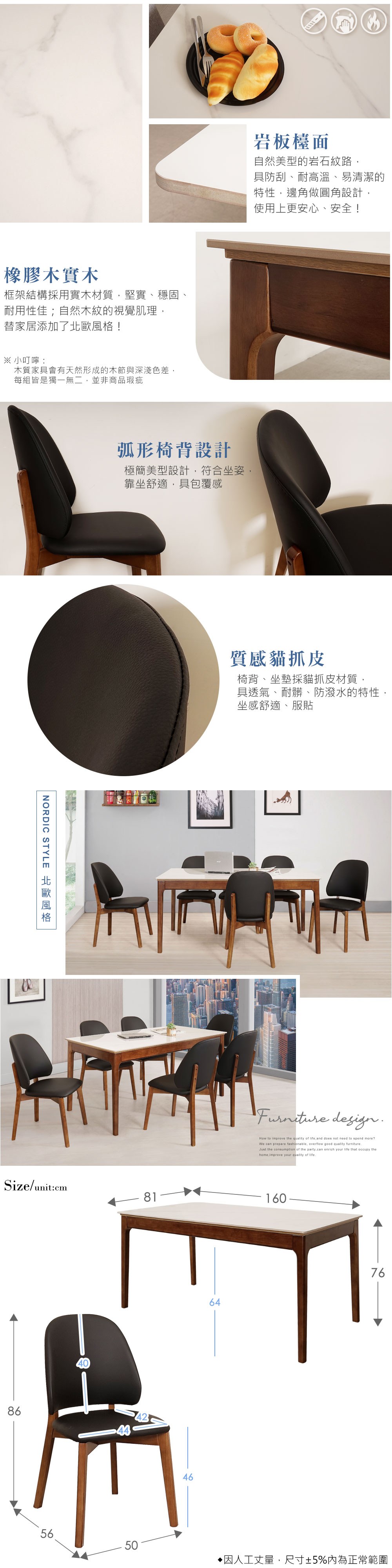 文創集 卡蘿莉岩板6尺實木餐桌布餐椅組合(一桌四椅組合)-180x90x75.3cm免組