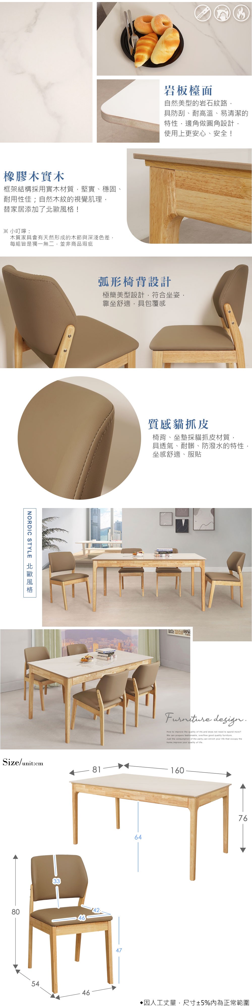 Homelike 喜家居岩板餐桌椅組(一桌四椅)-原木色(2420-33)