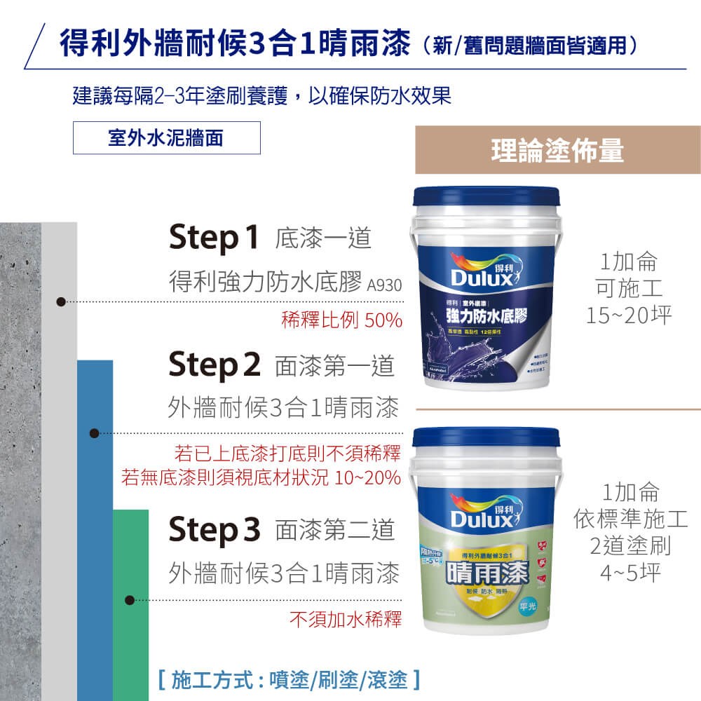 【Dulux_得利】A918 外牆耐候3合1晴雨漆 平光(1加侖裝)白色