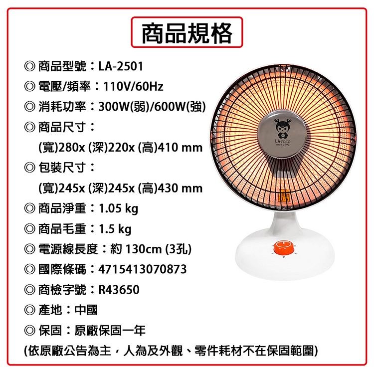 LAPOLO藍普諾 11吋速熱碳素電暖器 LA-2501