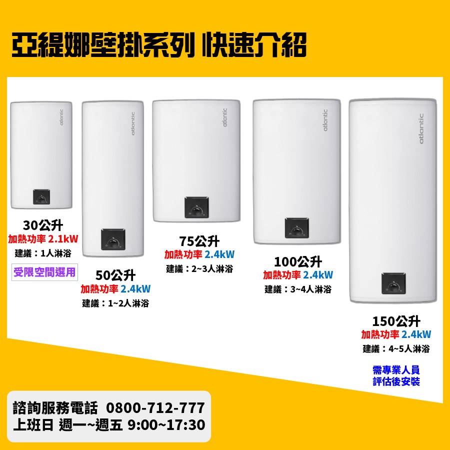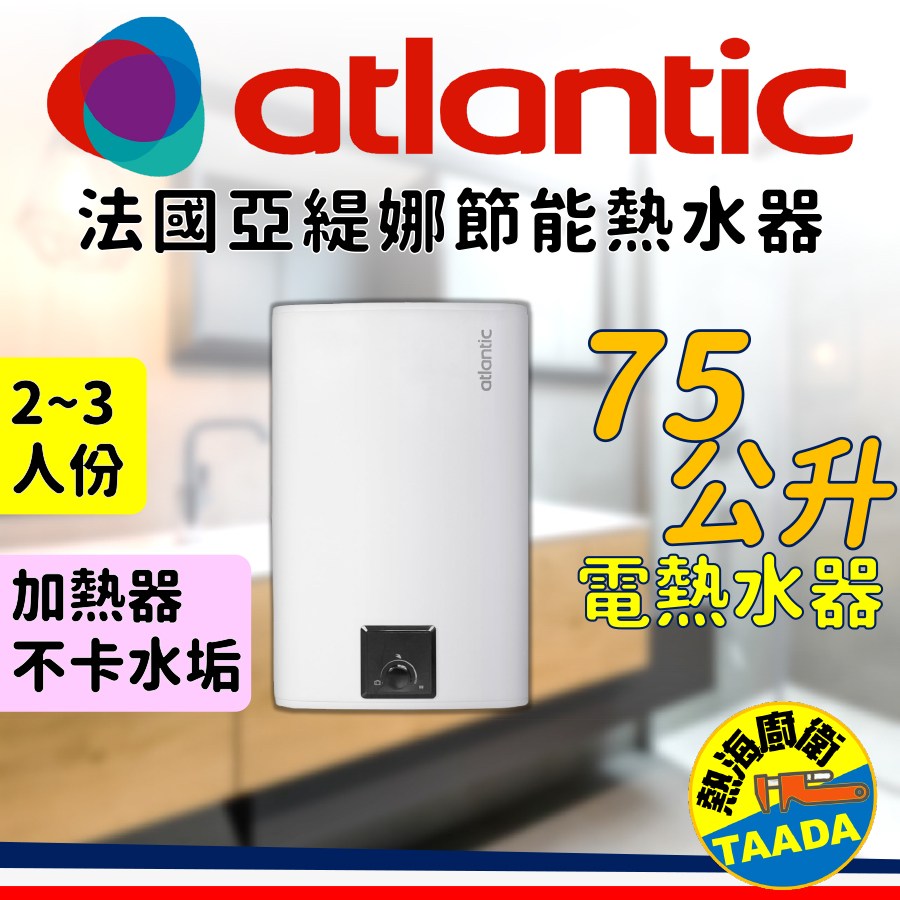 【法國亞緹娜ATLANTIC】 75L 不卡垢 電熱水器 世界品牌(含標準安裝)