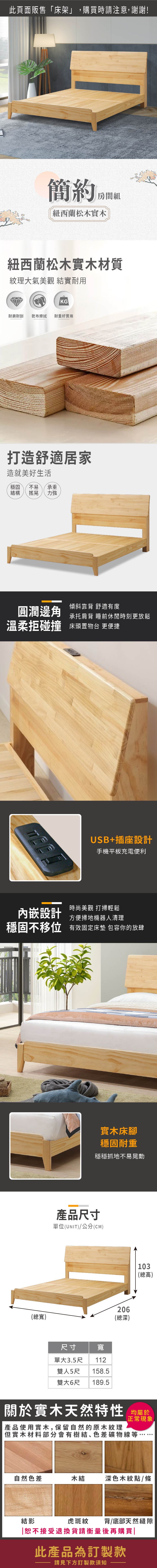 林氏木業簡約清新單人106x190床架 NE1A-原木色 (H014384294)