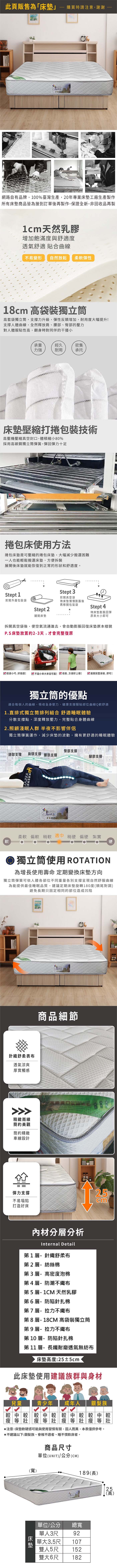 直人木業-CF018標準雙人-直人銀離子抗菌長纖獨立筒乳膠機能5尺床墊