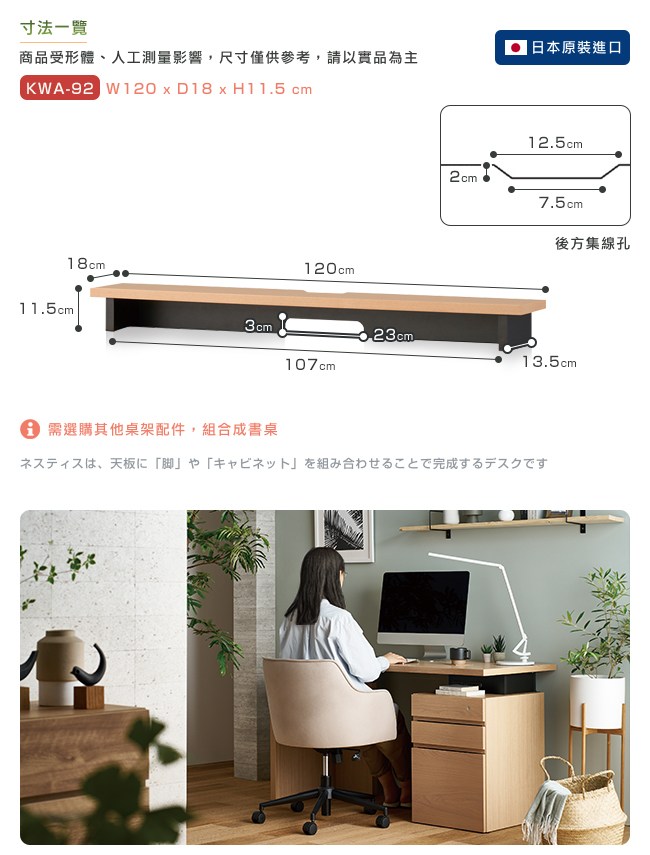 【KOIZUMI】NESTIS桌上架KWA-92‧幅120cm原木