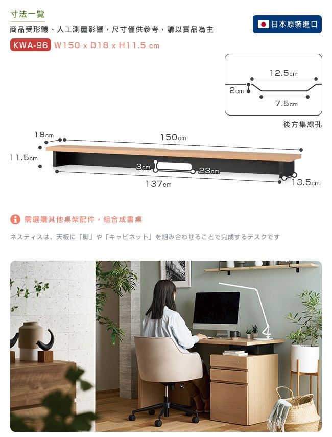 【KOIZUMI】NESTIS桌上架KWA-96‧幅150cm原木