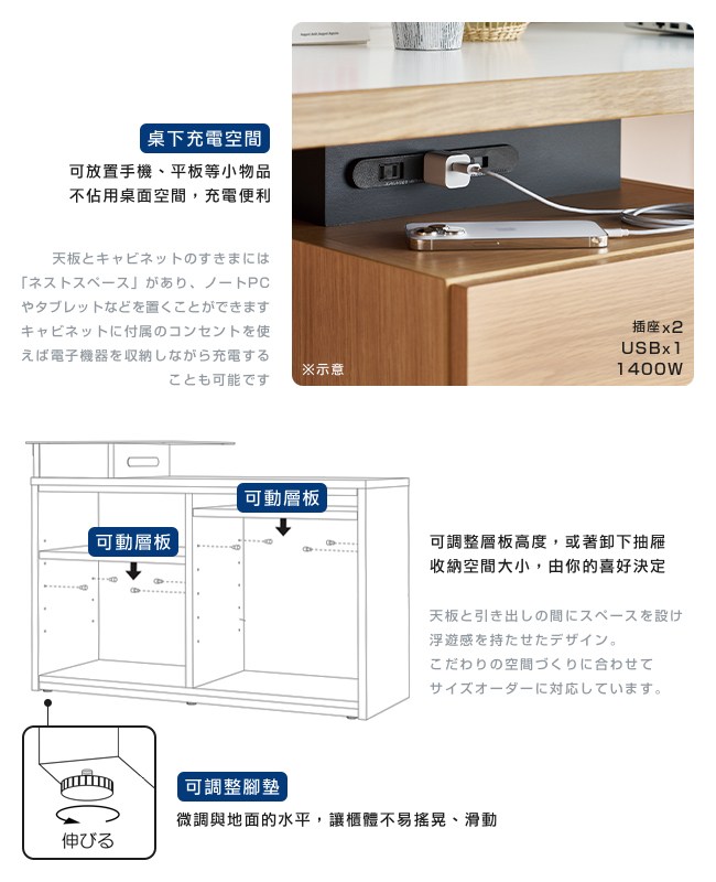 ◆ 可調層板高度,抽屜隨喜好能卸下