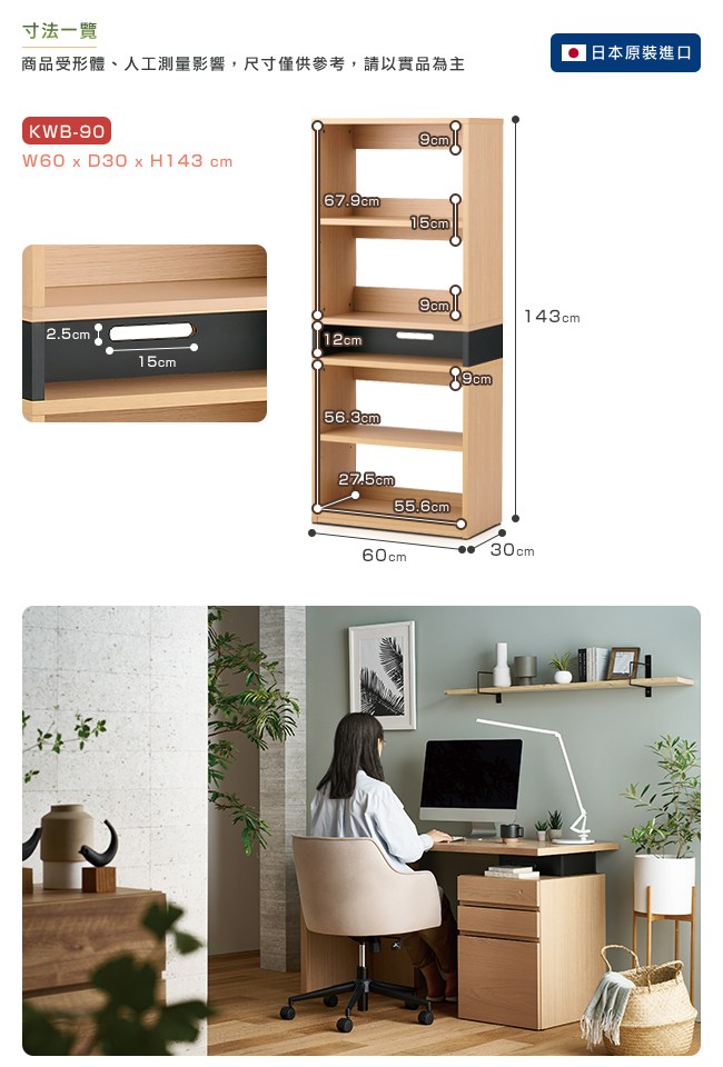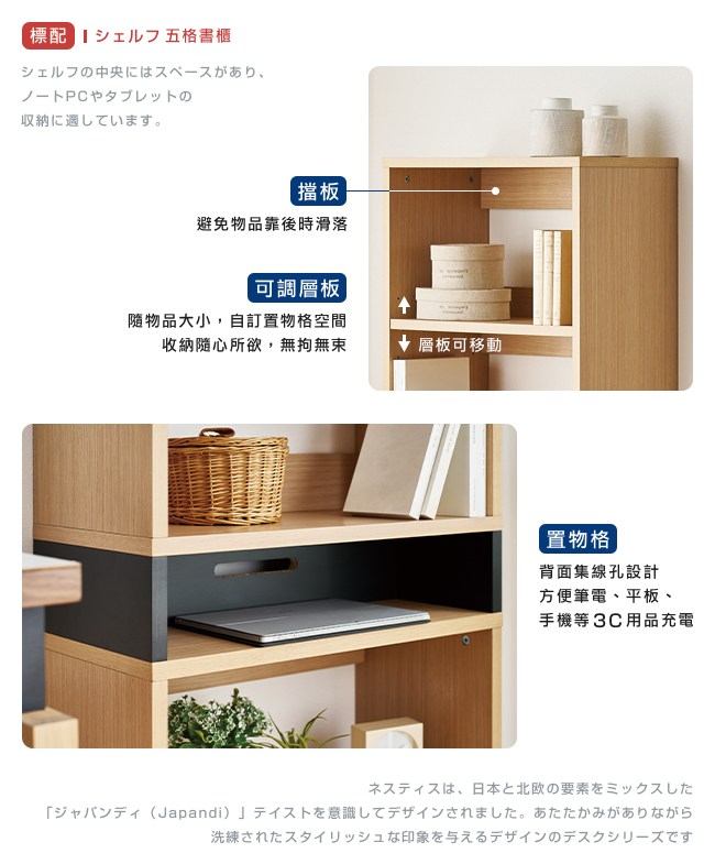 【KOIZUMI】NESTIS五格書櫃KWB-90‧幅60cm原木