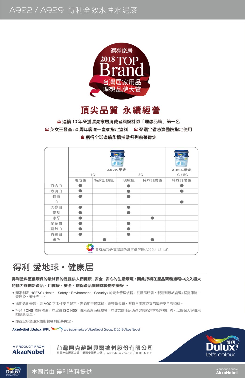 【Dulux_得利】A922 全效水性水泥漆(5加侖裝)特白