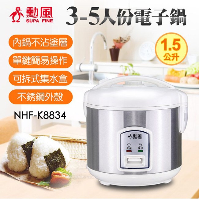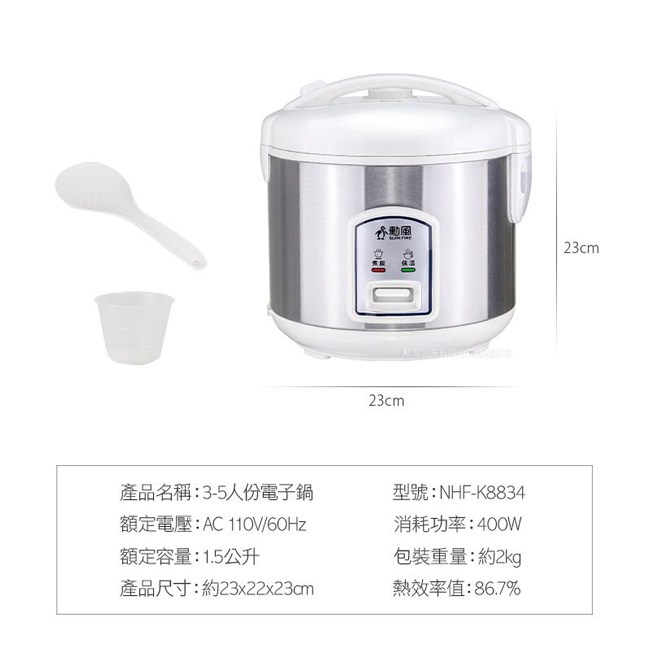 勳風3-5人份電子鍋/機械式 電子鍋 NHF-K8834送備長炭棒1支 蜂巢內鍋煮米飯鬆軟美味 電鍋飯鍋湯鍋美食鍋