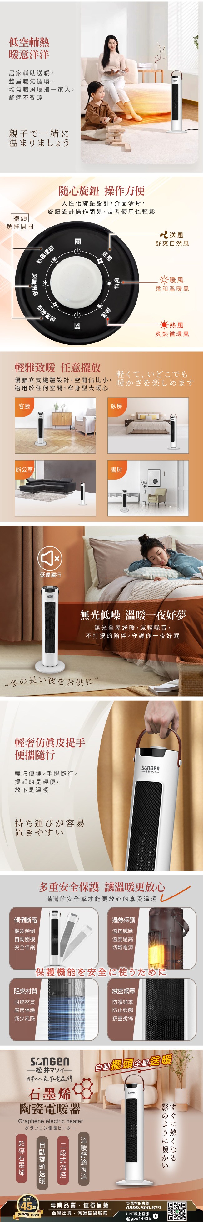 【SONGEN松井】直立式石墨烯陶瓷電暖器