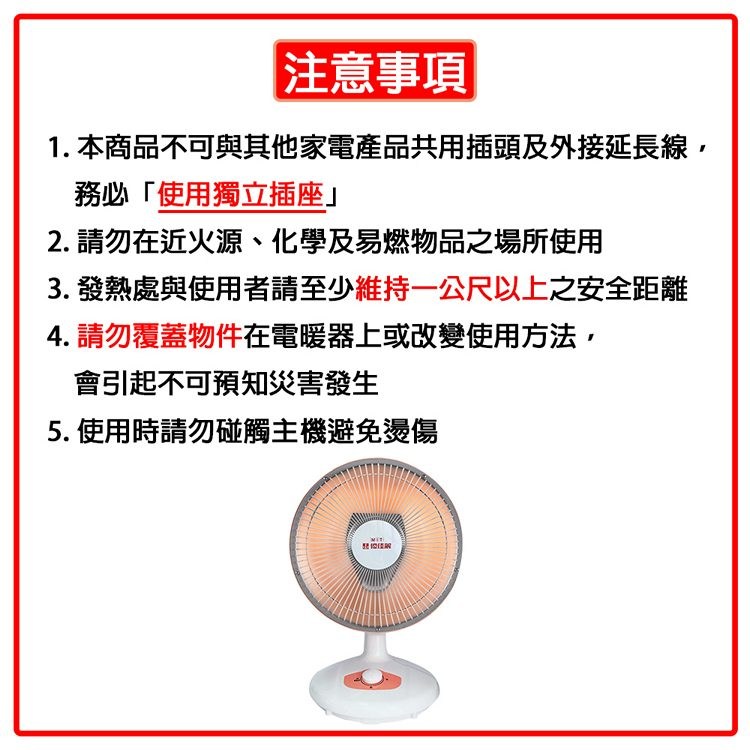 1. 本商品不可與其他家電產品共用插頭及外接延長線,