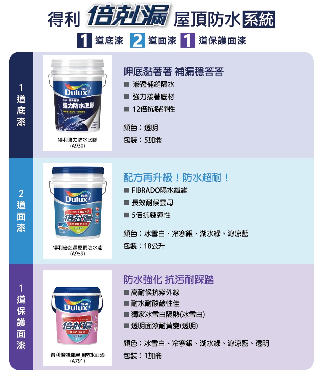 【Dulux_得利】A959 倍剋漏屋頂防水隔熱漆(5加侖裝)冰雪白