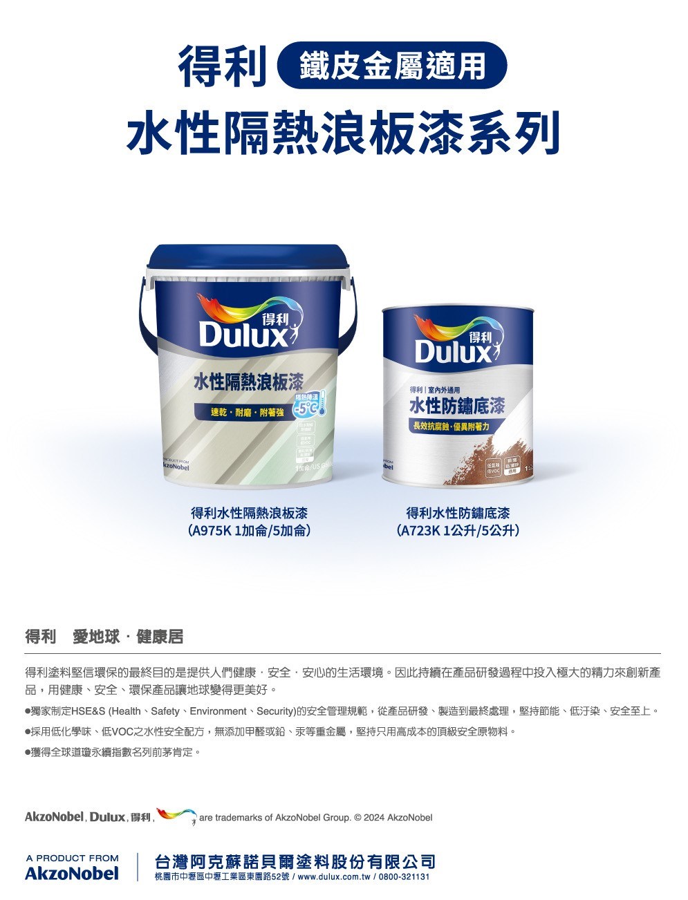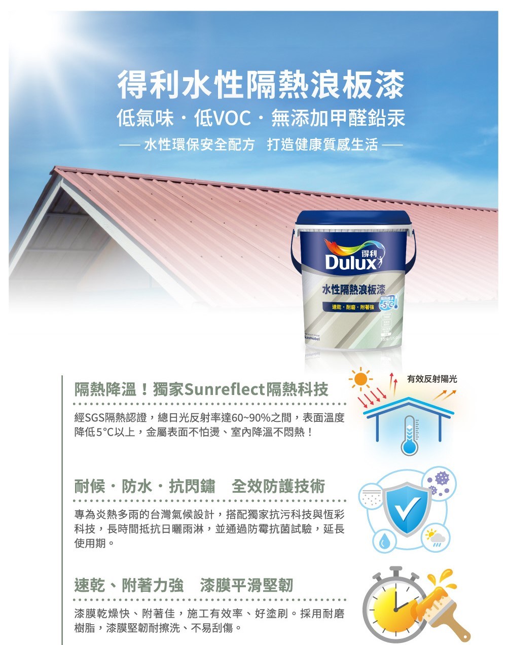 【Dulux_得利】A975 水性隔熱浪板漆(5加侖裝)迷霧白