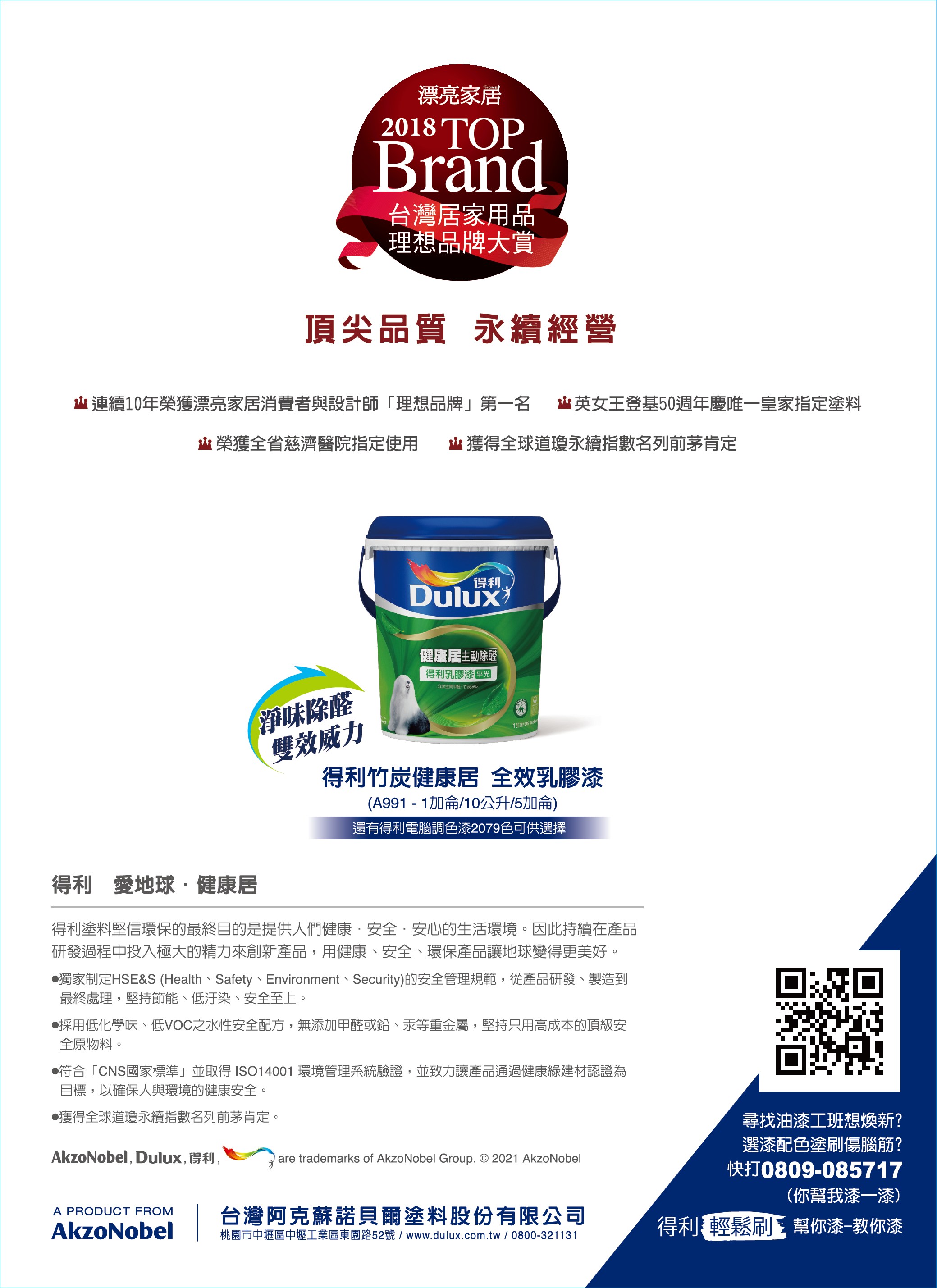 秘寶在這【Dulux_得利】A991 健康居除甲醛乳膠漆(1加侖裝)春光白