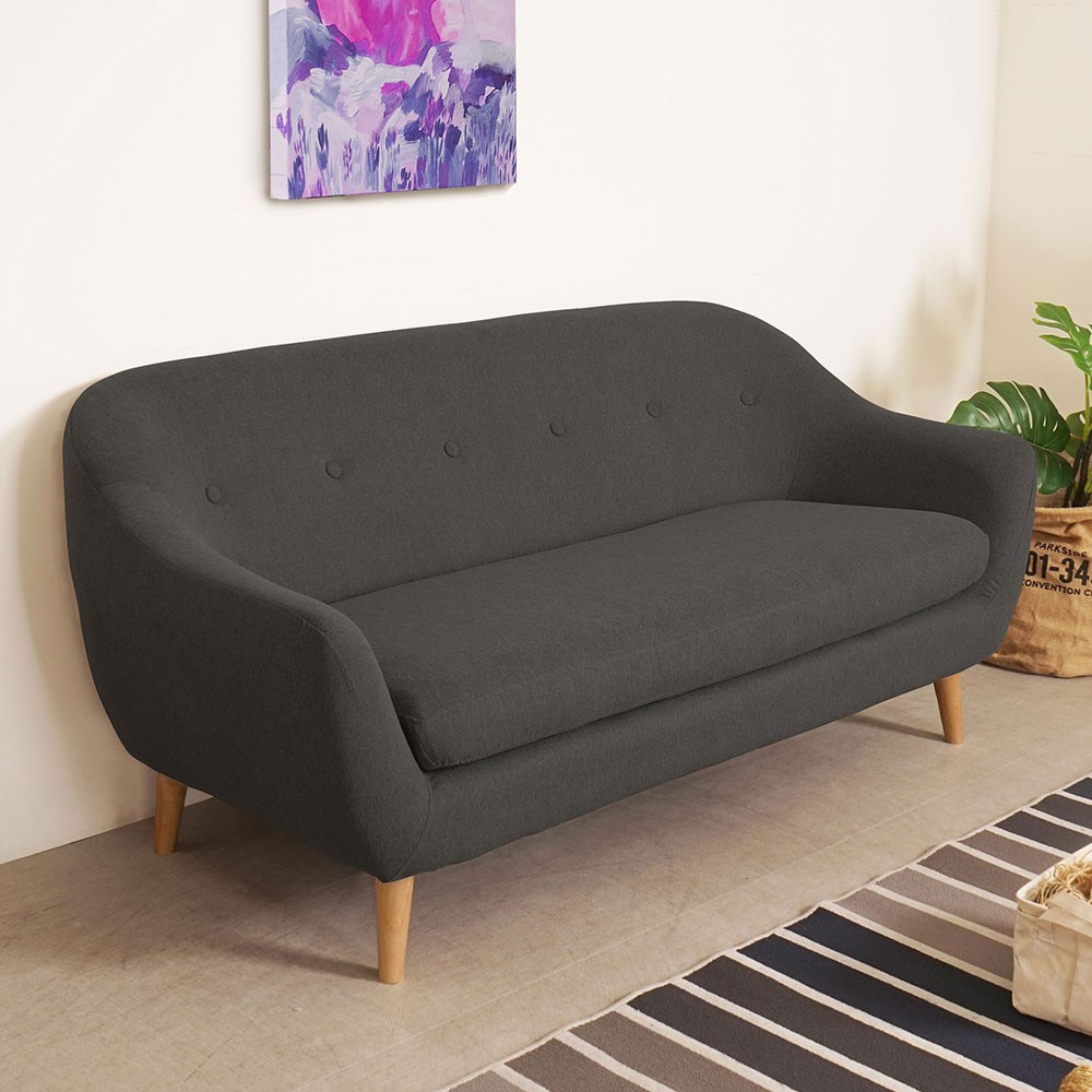 Homelike 喜家居三人座亞麻布沙發(深灰色)(2425)