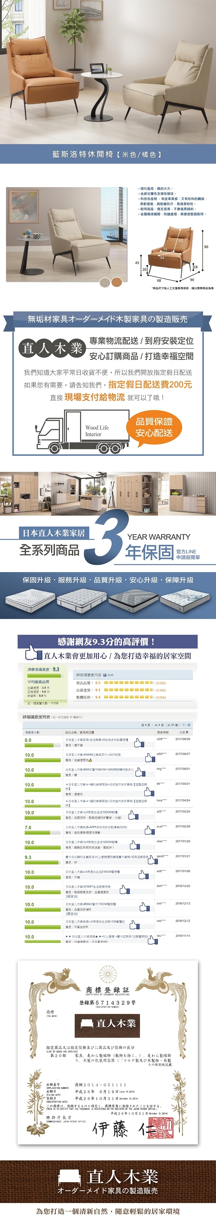 直人木業-藍斯洛特休閒椅(兩色可選)米色