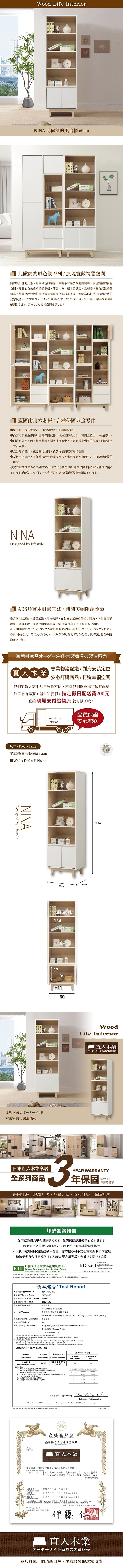 直人木業-NINA北歐簡約風書櫃60公分