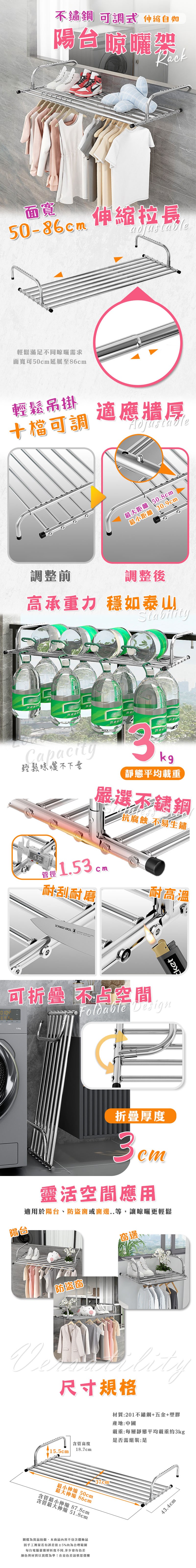 點我下載【居家cheaper】不鏽鋼可調式陽台晾曬架 HA5086-5SL 陽台延伸架 伸縮晾曬架