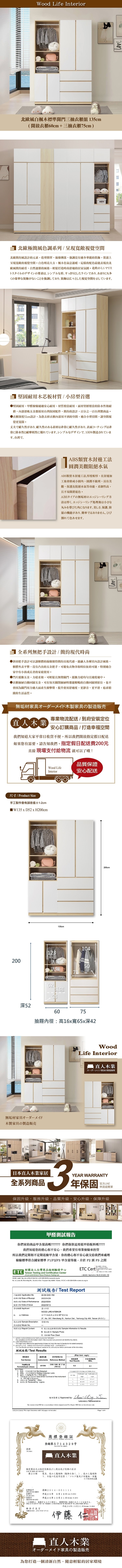 直人木業-北歐白楓木標準衣櫃150公分(兩個三抽衣櫃)