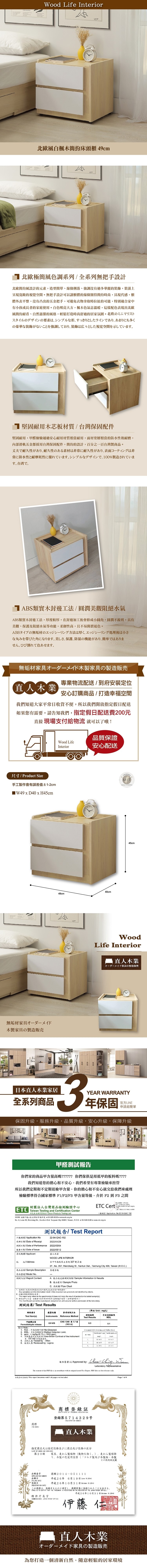 直人木業-北歐風白楓木簡約床頭櫃49公分