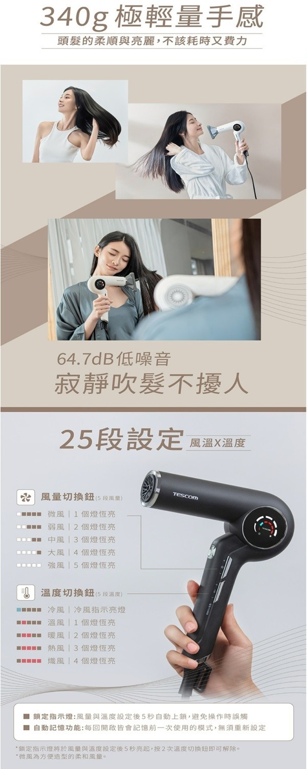 【TESCOM】輕量型負離子吹風機 TID292TW