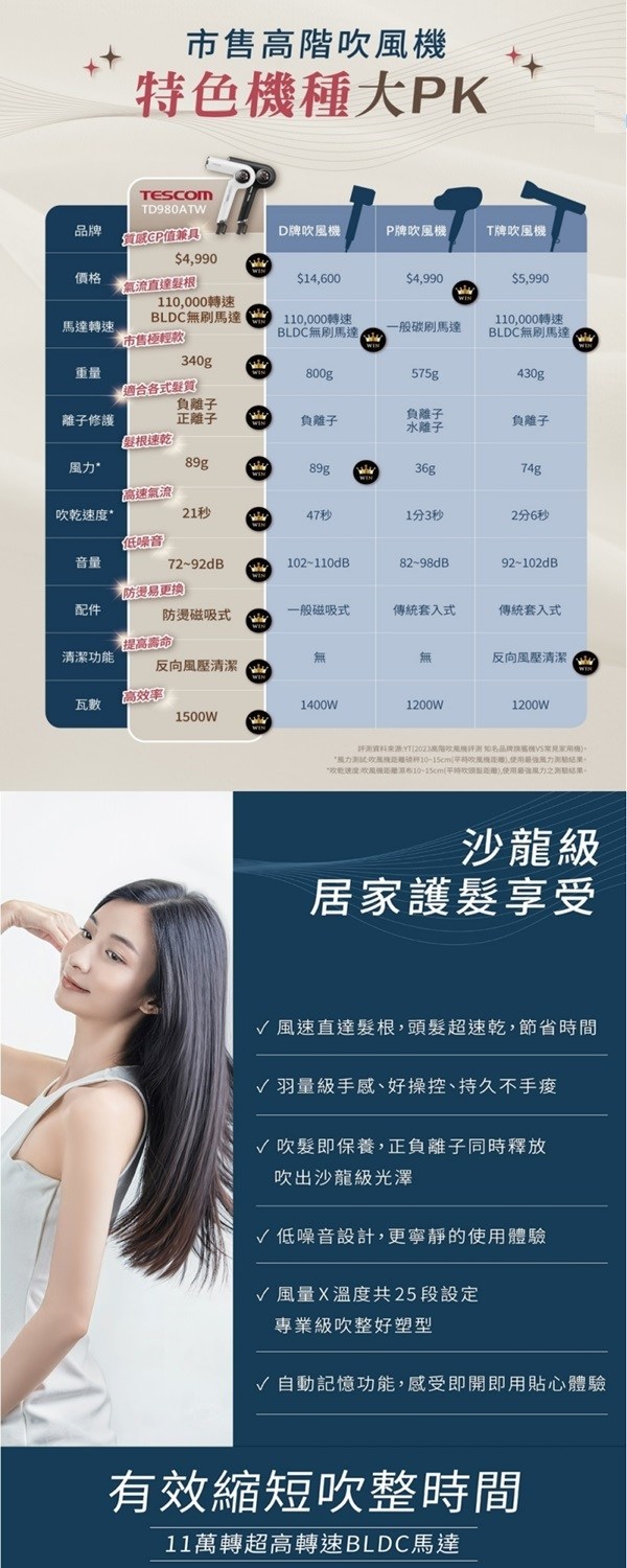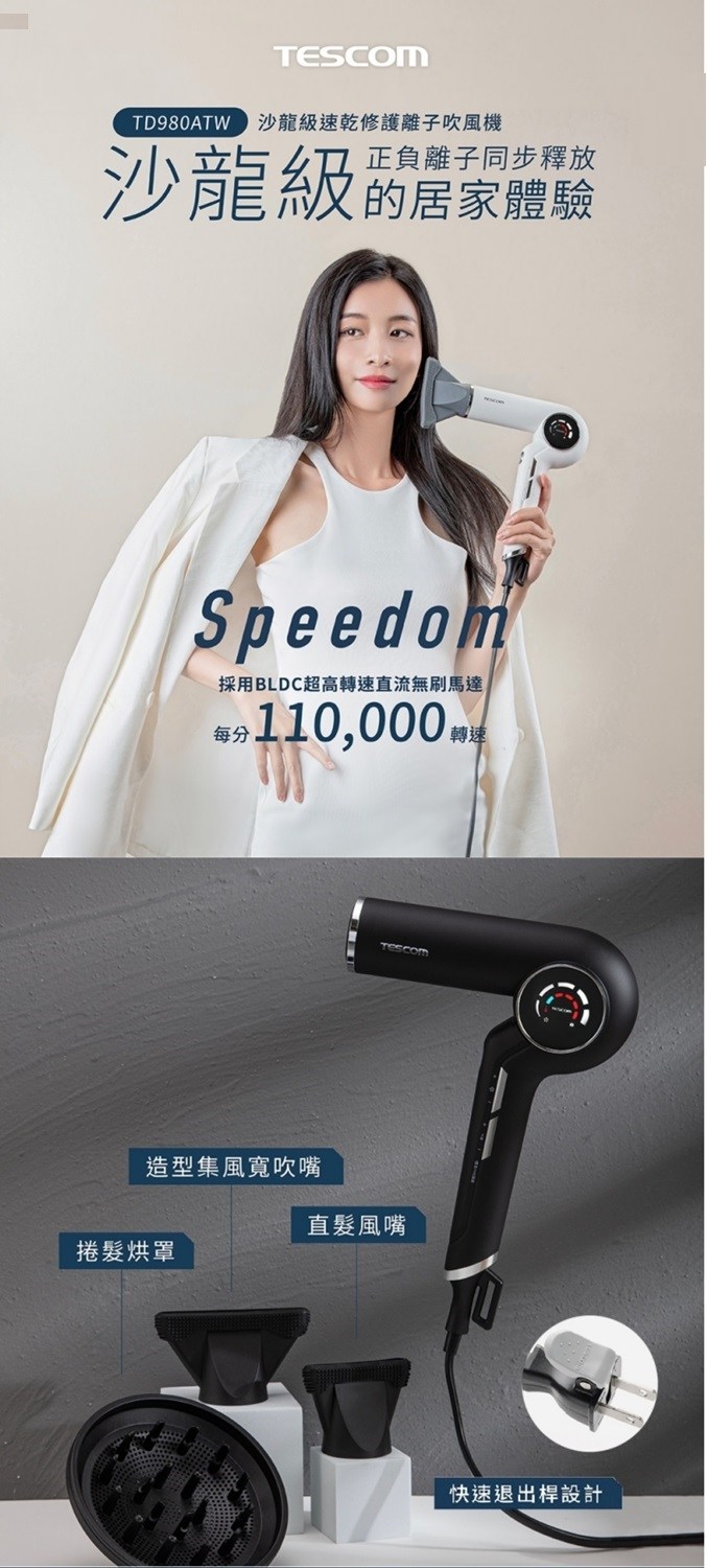 TESCOM 沙龍級速乾修護離子吹風機 TD980ATW