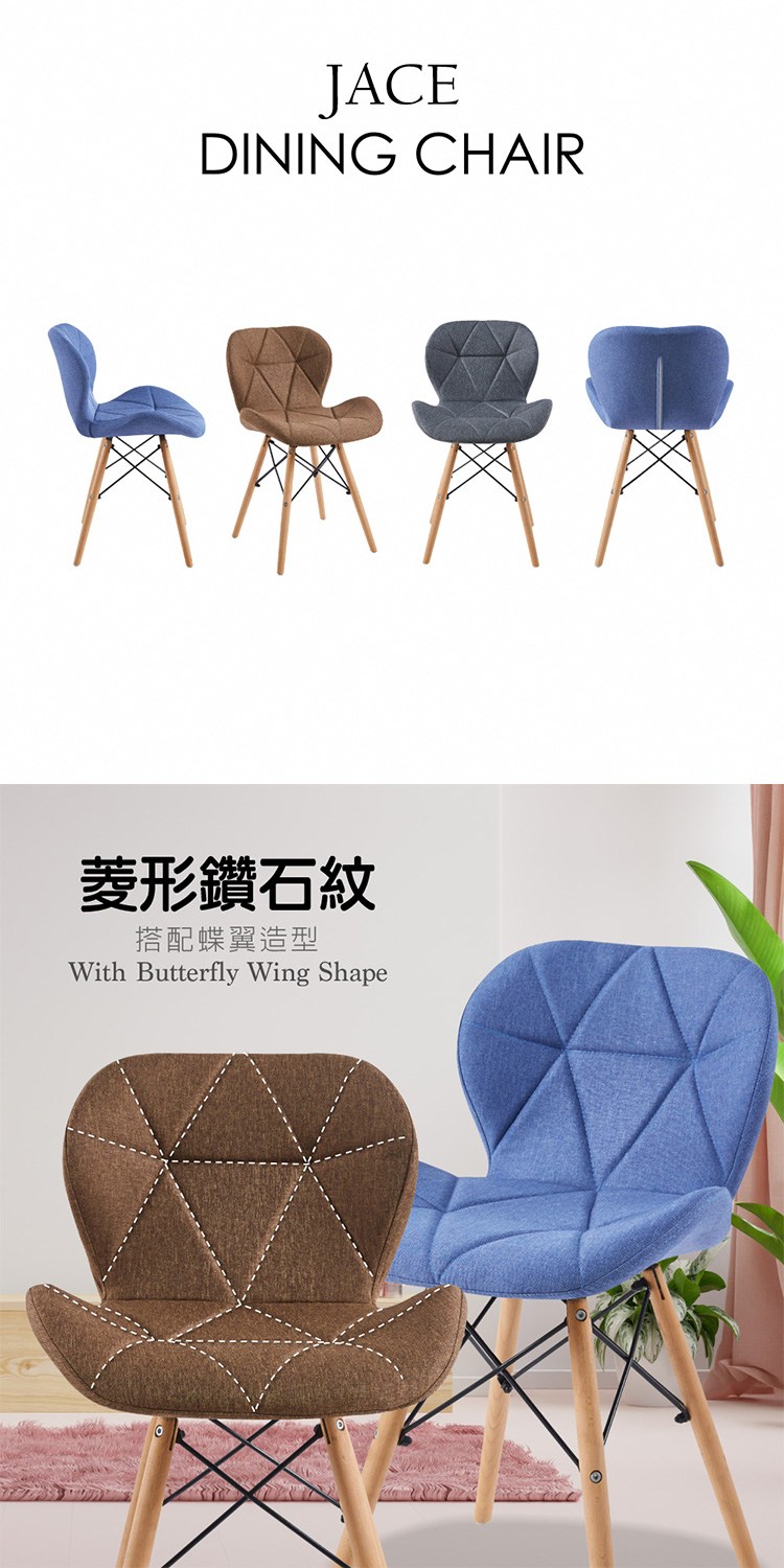 [E-home]Jace婕斯菱格紋布面休閒餐椅,現代時尚設計風格展現您的個性,輕鬆擁有生活品味。
