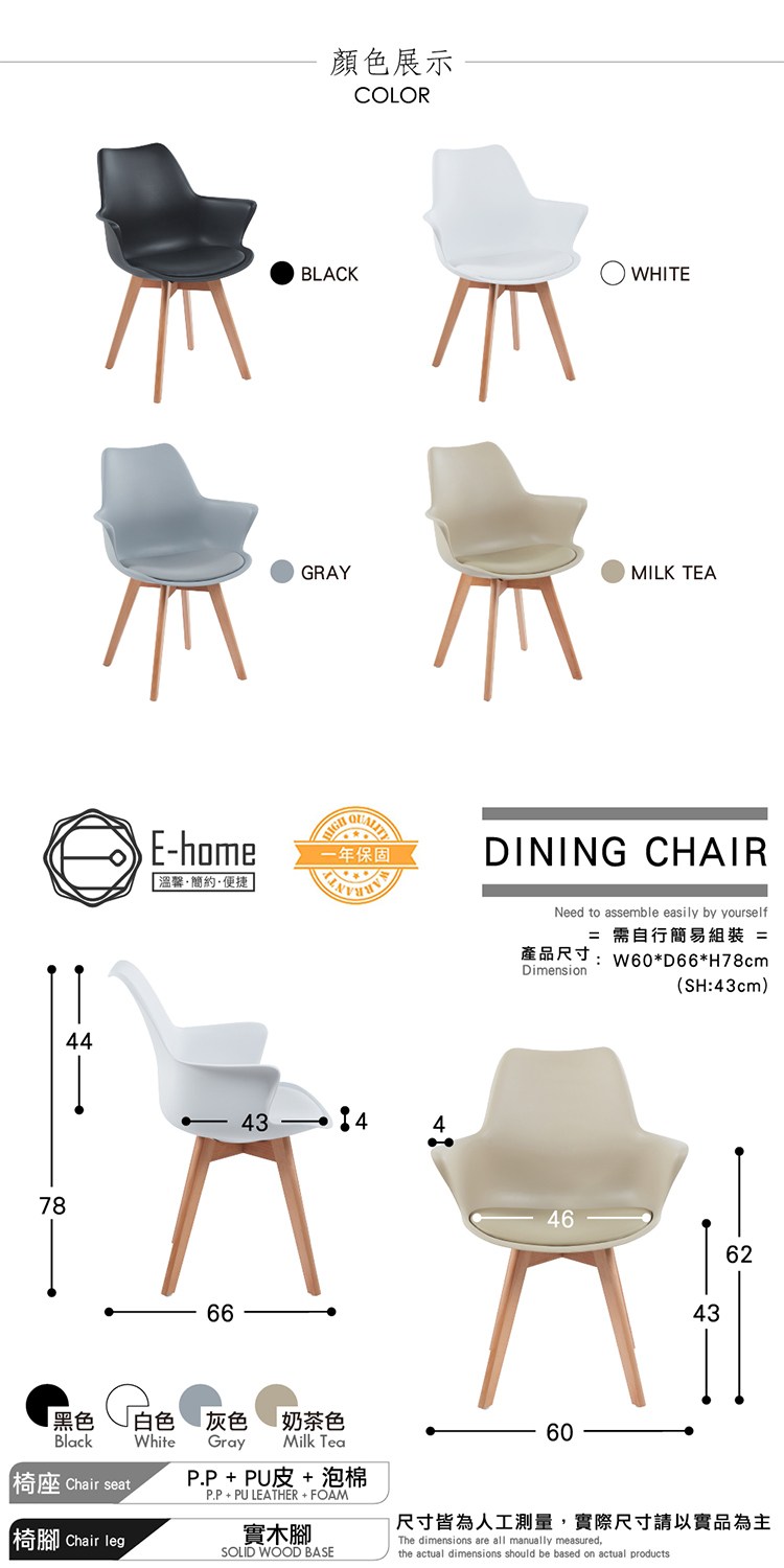 正常使用下,結構保固一年,立即添加到購物車,您將體驗此櫸木腳餐椅的功能性和舒適性!