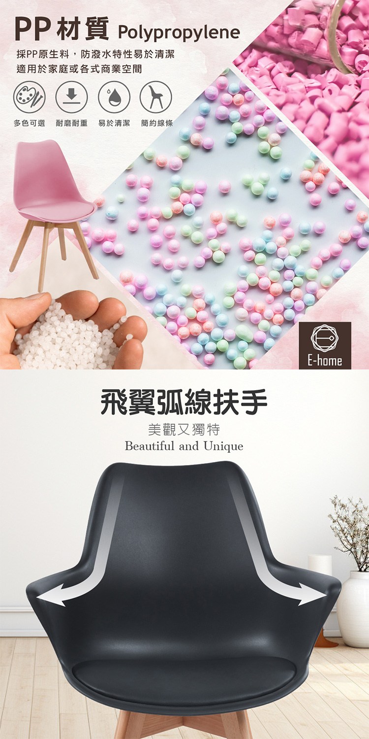 E-home Huggie哈吉簡約軟墊扶手PP櫸木腳餐椅-四色可選