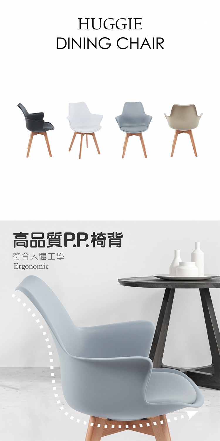 [E-home]Huggie哈吉簡約軟墊扶手PP櫸木腳餐椅,北歐簡約工藝美學讓您擁有時尚,耀眼的品味家具。